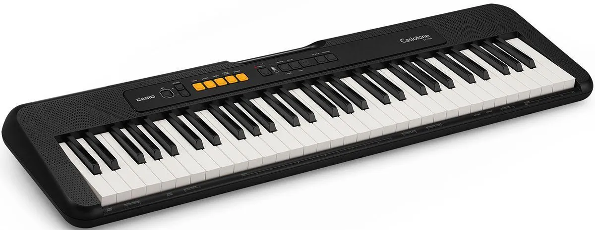 Casio CT-S100 – это цифровой синтезатор начального уровня, относящийся к линейке CasioTone, которая названа в честь первого портативного инструмента компании, выпущенного в 1980-м году и имевшего цель сделать подобные устройства доступными для большинства людей за счет низкой цены, малых габаритов и дружелюбного функционала. Данная модель из обновленной серии является самой младшей и предлагает скромное по современным меркам количество встроенных звуков, а также только самые необходимые функции для домашних занятий, репетиций и выступлений на концертах.